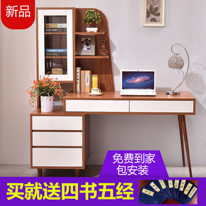 实木书桌书架组合家用小户型一体电脑台式桌简约学生带...