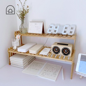 简易书桌上伸缩小书架办公室桌面置物架家用学生多层整...