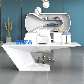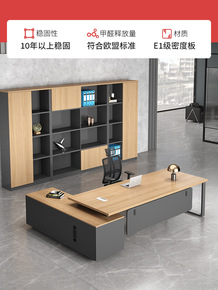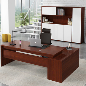 办公桌现代简约老板桌大班台办公室电脑桌主管总裁带柜...
