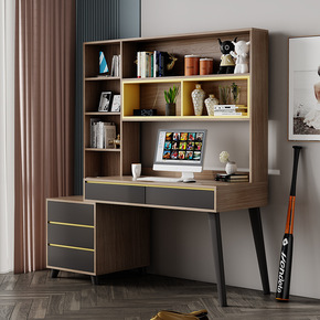 厂家直销 书桌简约家用书柜书架组合一体桌学生卧室电...