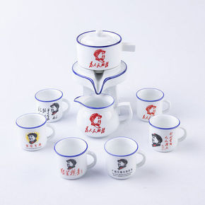 。整套仿搪瓷怀旧语录功夫茶杯茶具套装懒人泡茶石磨自...