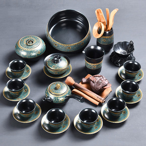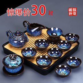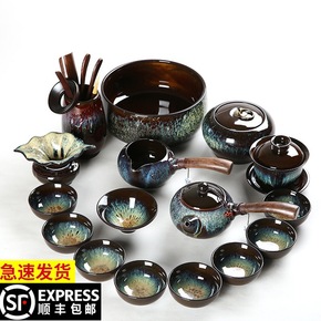 茶具全套窑变建盏茶具套装家用茶壶器功夫茶具盖碗泡茶...