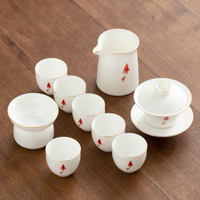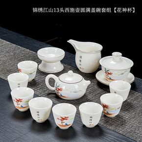 伊鉴如顾羊脂玉白瓷功夫茶具套装商用茶具高档礼盒盖碗...