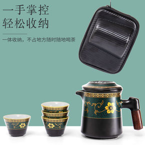日式黑陶功夫茶具套装办公家用简约陶瓷茶壶茶杯整套泡...