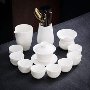 德化白瓷羊脂玉功夫茶具套装家用现代中式泡茶办公室会...