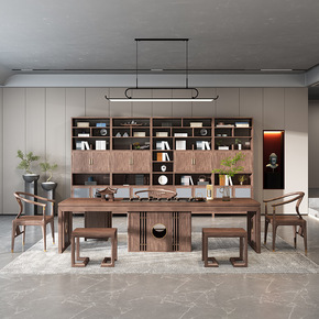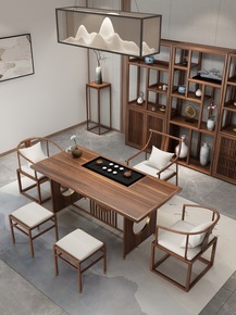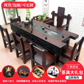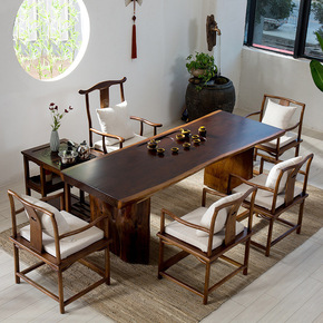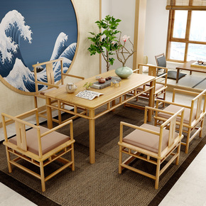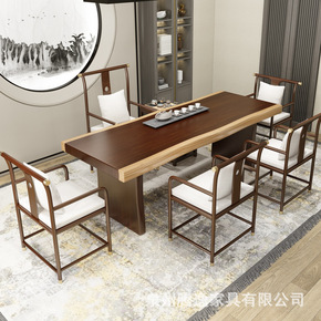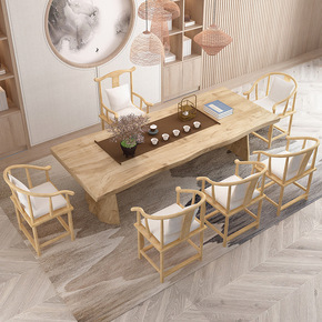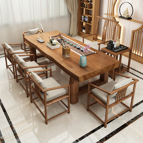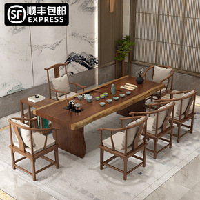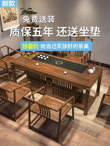 新中式实木茶桌椅组合办公家用简约茶几套装一体大板功...