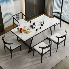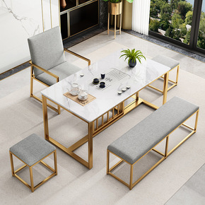 小户型火烧石功夫茶几客厅阳台大理石茶台桌椅组合多功...