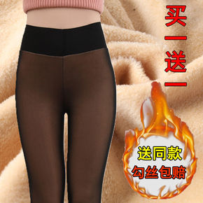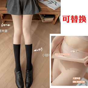 光腿神器女秋冬加绒加厚长筒连裤袜撞色纽扣可替换双层...