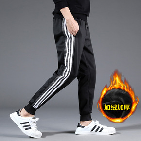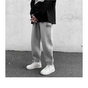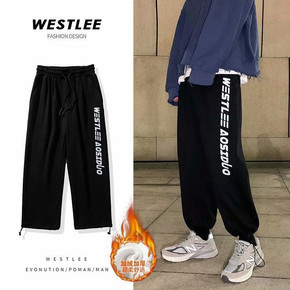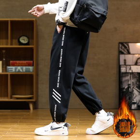 秋冬加绒裤子男韩版潮流宽松抽绳束脚休闲直筒潮牌运动...