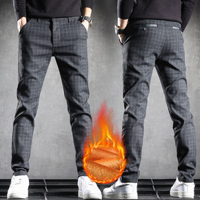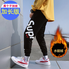 秋冬高个子男士休闲裤加绒加厚棉高腰保暖宽松加长版休...