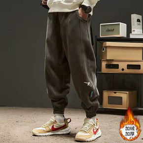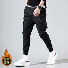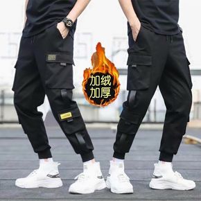 加绒裤子男潮流男装秋冬季潮牌工装裤休闲宽松男士运动...