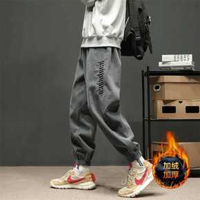 裤子冬款男秋灯芯绒宽松哈伦休闲长束脚韩版士薄加绒加...