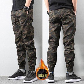 秋冬季潮牌迷彩裤加绒加厚休闲裤男束脚工装裤保暖大码...