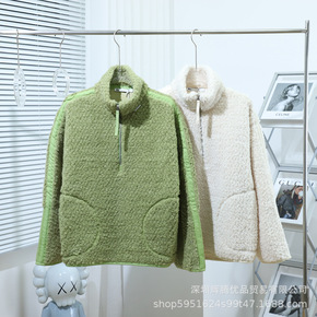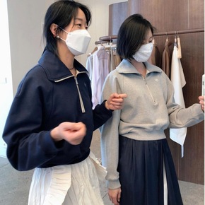 21AW新品 韩国翻领半拉链休闲卫衣字母刺绣...