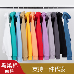 跨境货源国际站抓绒纯色帽衫男士女士卫衣连帽套头杉运...