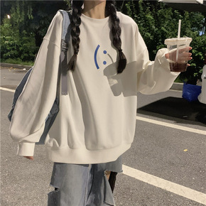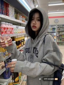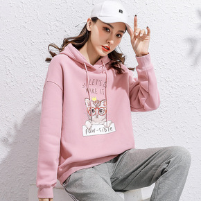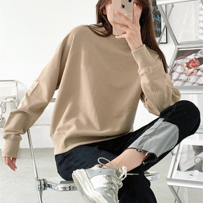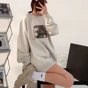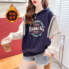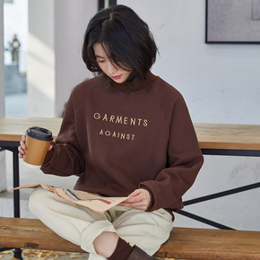 2021年秋冬新款韩国刺绣字母加绒圆领套头卫衣女休...