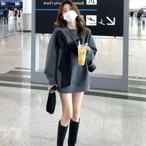 珍珍家黑橡果空气层蝴蝶结卫衣女秋季时尚宽松显瘦套头...