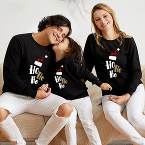 hoho红格子圣诞猫字母印花卫衣亲子装家庭装喜庆款...