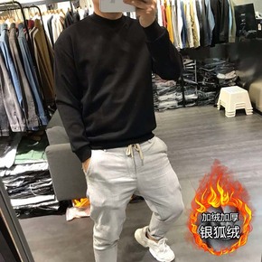 纯色卫衣男宽松潮流百搭半高领打底衫白t内搭叠穿学生...