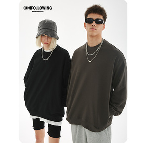 UNF 2021秋冬新品圆领重磅毛圈小领口纯棉侧边...