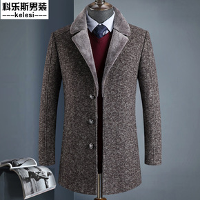 2020科乐斯冬季中长款羊毛呢子大衣男外套中年翻领...