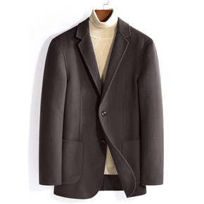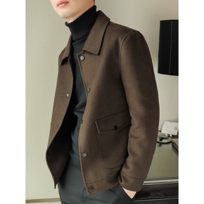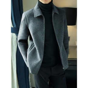男士双面羊毛呢子大衣短款秋冬羊绒加厚翻领夹克休闲新...