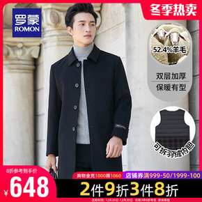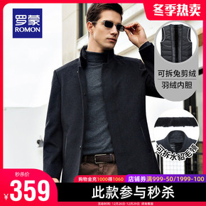 【惠】罗蒙毛呢大衣男冬季水貂领可拆羽绒内胆冬季加厚...