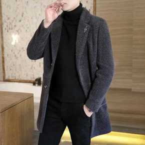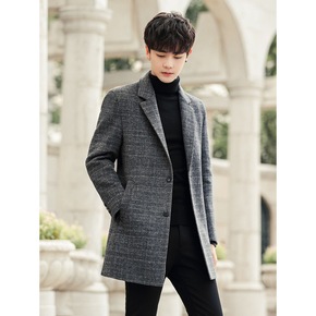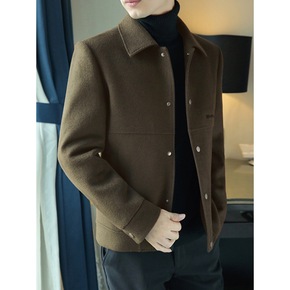 2021冬季男士时尚西装领呢大衣 中青年加厚短款羊...