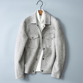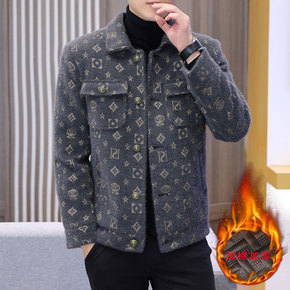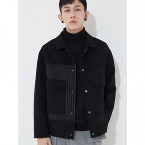 刺绣双面呢羊毛条纹男装夹克风外套2022秋冬新款翻...