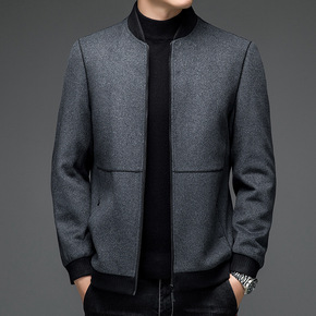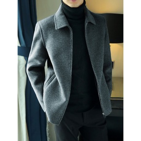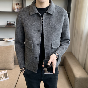 秋冬加厚夹克男士羊毛呢子大衣短款修身双面羊绒韩版休...