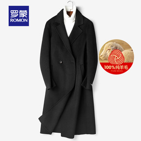 罗蒙中长款毛呢大衣男2021秋冬双面呢子外套加厚可...