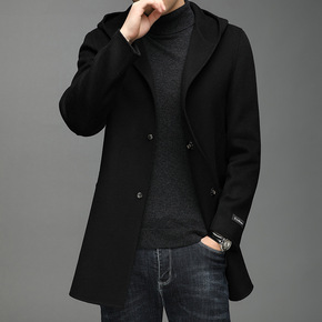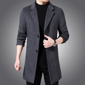 加厚保暖毛呢大衣男士中长款外套新款潮男简约百搭呢子...