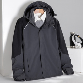 夹克男士外套秋冬季新款连帽防水防风冲锋衣男女同款三...