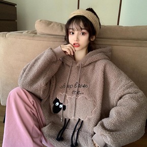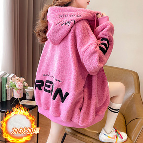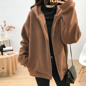 摇粒绒连帽卫衣外套女慵懒风宽松百搭柔软加绒加厚休闲...