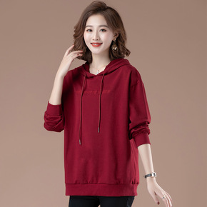 连帽加绒加厚卫衣女2022年新款秋冬中年妈妈大码宽...