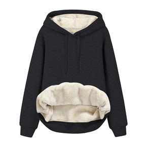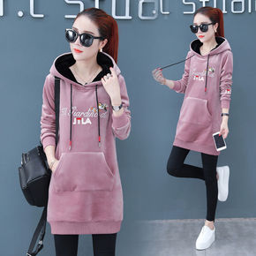 双面绒中长款套头卫衣女连帽秋冬装金丝绒加绒加厚冬季...