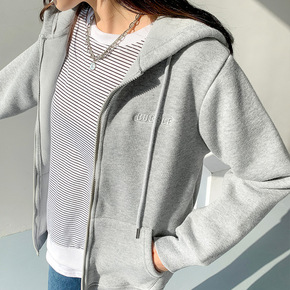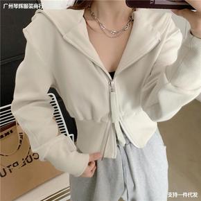泰迪绒新款2021冬季加绒卫衣女韩版刺绣拉链上衣时...