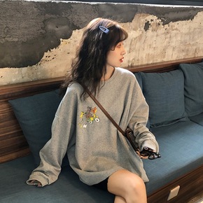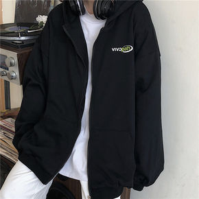 2021新款显瘦个性宽松BF风连帽口袋中长款加绒加...