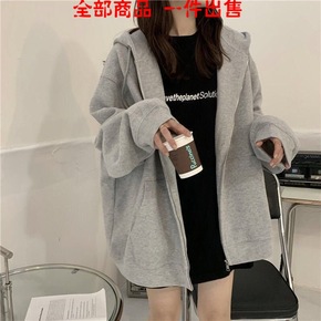 跨境外贸2021加绒加厚春秋新款上衣欧美宽松拉链外...
