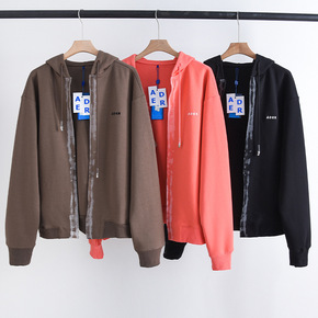 现货ADER卫衣女2021秋冬做旧无拉链连帽开衫刺...