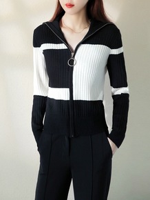法单M家2021秋冬新款扣子名媛修身撞色名媛针织外...