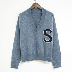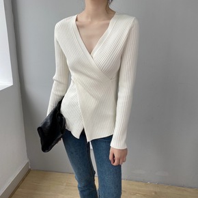 嘉织8T8091 心机设计感v领交叉长袖毛衣 开叉...