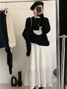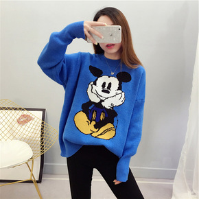 2021秋冬季新款女士宽松圆领针织衫米老鼠包芯纱学...