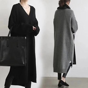韩国确定2021新款毛衣裙V领针织套头打底衫大码宽...