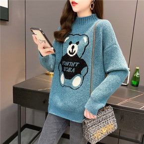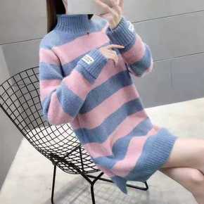 加厚内搭毛衣女2021秋冬新款韩版宽松套头半领中长...