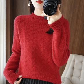 秋冬季高端慵懒洋气圆领绞花100纯羊毛加厚内搭打底...