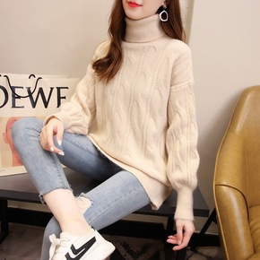 加厚高领毛衣女内搭2022新款秋冬装麻花慵懒风纯色...