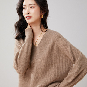 简约软糯山羊绒衫女V领加厚套头羊绒衫慵懒风宽松毛衣...