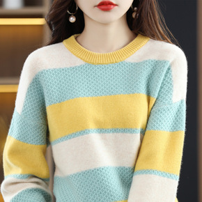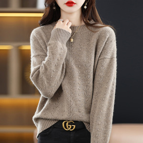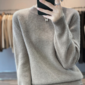 秋冬新款100羊毛衫女圆领套头加厚宽松显瘦羊绒衫毛...