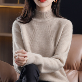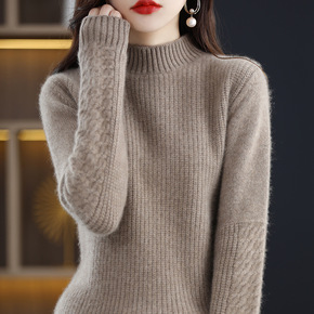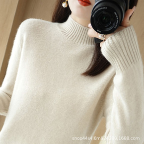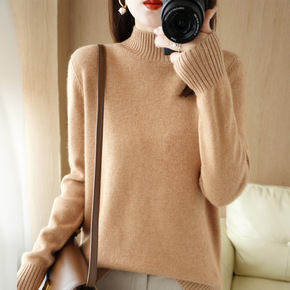 秋冬新款加厚半高圆领羊毛衫女宽松慵懒风羊绒针织外穿...